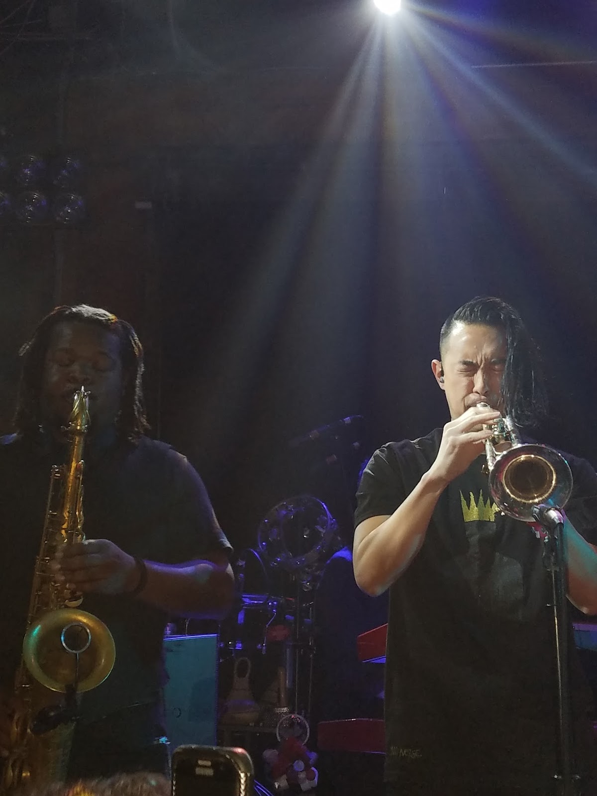 The only disadvantage the Monophonics had when following Con Brio was that lead singer Kelly Finnigan is also the keyboardist, so was behind an instrument instead of dancing up a storm. Luckily, the man can belt out a tune, and the group’s solid rhythm section and dual percussionists (Austin Bohlman on the drums, and a guest drummer manning bongos) kept the show lively. The guest drummer helped infuse a bit of Latin music into the more traditional funk-soul the group have mastered. Set highlight was when Kelly brought down his father to join him on the keyboard, as well as bringing in a guest vocalist (I sadly don’t remember her name or the band she was from), who took the room into a raw, rocking rave-up. This is not a band you should see if you’re looking to sit back and relax; they will make you move.