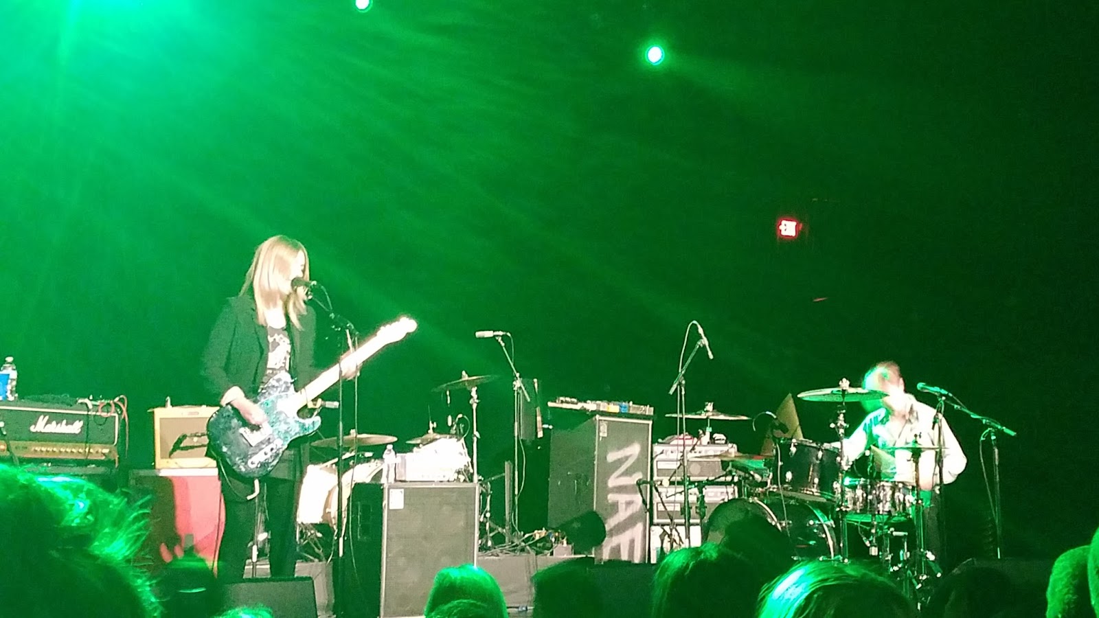 I did my best to ignore this facet of the theater as the opening band Blood Red Shoes came on. This London two piece at first made me think of a reversed White Stripes, with the quieter, moody Meg-type (Laura-Mary Carter) on guitar, while the more gregarious an explosive Jack-type (Steven Ansell) pounded the drums like a human version of the Muppet’s Animal. While this dynamic didn’t evolve much through the set (it was only on a rare occasion that Carter showed a smile), they did prove their ability to rustle up a lot of hard-rocking noise, winning the audience over with sheer head-banging bad-assery. While only a few of their songs were memorably tuneful (“An Animal” and new single “God Complex” fought through the noise to reveal a superior hook), the duo proved they knew how to put on a performance.