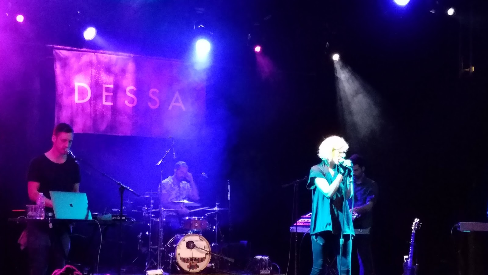 Opening band (and Dessa‘s touring band) Monakr were partway through their set when we arrived. Their tunes were pure synth pop rock, and were highly palatable to our ears. The hooks were solid and their energy was perfect for warming up the crowd for Dessa.
