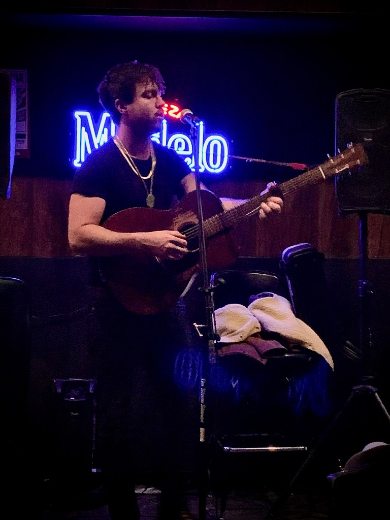 I arrived to the bar early, and was quickly welcomed by Jared, and a couple of others who were already there. He is a very gracious, humble, and welcoming human – you can tell that his fans are important to him. With a free PBR in hand, thanks to a rep from Pabst, Jared sat down and we had a quick chat about X-Men (due to my Marvel comics phone case) before he made his way around to talk to other fans as they began to arrive. He asked for any requests that anyone had and said he’d do his best to work them into the set, as he really did want to tailor the show to what his fans wanted to see played.