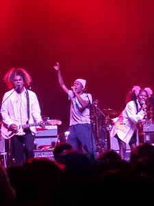 First act was our recent Bad Ass Break-Outs BLACKSTARKIDS, and I felt even more vindicated in dubbing that title upon them after seeing them live. Coming on stage lined up, the trio of The Babe Gabe, TyFaizon, and Deiondre (and joined by Jack on drums and JP on keyboard) brought a huge, hype-filled A-game to the stage, running through catchy rockers, fiery punk songs, smooth indie pop and knock-out hip hop. During “Frankie Muniz”, the group had the whole audience waving hands in the air, and worked them up to a frenzy for “Revolt Syndrome”. Finale “Time Flies When You’re Having Fun” was an endearing mix of fun and heart. I wouldn’t be surprised if the next time the group comes to LA, they are headlining the venue.