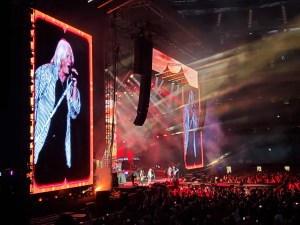 New song “Kick” was written to be a stadium rocker, and it fit the bill, coming right after the aggressive “Armageddon It”. The band set-up at the end of the stage walkway for a two-song acoustic performance; first the new song “This Guitar”, and then the oldie “Two Steps Behind”. They quickly returned to power rock with “Rocket”, which had fists pumping the air in time. “Hysteria”, while not as big of a hit as some of their other songs, received an enthusiastic response, though nothing compared to “Pour Some Sugar On Me”, Def Leppard‘s most enduring single. Yes surprisingly this was not the closer – the band followed that singalong with “Rock of Ages”, and then conjured heaps of nostalgia with “Photograph”, including old photos of the band appearing on the monitors, mixed in with ones of DL fans from the stadium that day. It was a nice way to pay homage to their legacy.
