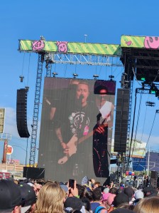 All Time Low have been one of the biggest pop-punk success stories of the last decade. It took me a bit of time to come around on them, as some of their earliest songs felt a little derivative of blink-182. Maybe frontman Alex Gaskarth wanted to pay tribute to that influence, as he too was wearing a blink shirt as he came on stage (overall, I would say blink-182 merch was the most widely worn throughout the fest). Teasing the audience with the opening of “Dear Maria, Count Me In”, the band put an end to that and launched into the excellent “Weightless”, the first song that made me realize this band were going to be more than a throwaway pop-punk group. And since then, they have more than come into their own. Tracks like “Lost in Stereo” and “Damned If I Do Ya (Damned if I Don’t)” stand on their own merits, and their songwriting evolution can be heard on new tracks like “New Religion”, for which they brought out rising star Teddy Swims for the R&B-leaning alt rock track. The band then blew away everyone by brining out the Sk8ter Queen herself, Avril Lavigne, for their new collaboration “Fake as Hell”, and then her pop-punk bop “Sk8ter Boi”.