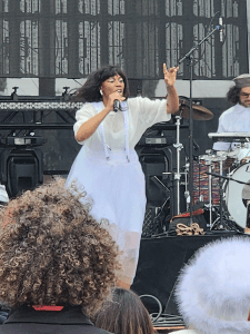 A couple years ago, the independent artist had made headlines when she publicly discussed how it had become economically unfeasible for her to tour anymore due to the modern realities of touring costs. It was a discouraging thing to read, as talented artists like her should be selling out venues across the country and able to make a profit from it. So knowing that a full-fledged tour from her may not be forthcoming, I wanted to be sure to have a great spot to see Santigold in action. Back by two dancers/back-up singers, a drummer and a multi instrumentalist, all dressed in white, Santigold didn’t waste time getting into hits like “L.E.S. Artistes” (see video at the top of the page), “Lights Out” and “Say Aha”. I had forgotten how many great bangers the artist had, and despite being admittedly under the weather, Santigold sounded great. Her synchronized dance moves with her band made the stage show mesmerizing, and songs like “Shove It” were big audience pleasers. Even more pleasing was when she brought up a crowd from the audience to join her in dancing on stage (one over-zealous woman tried to get Santigold’s attention to espouse her love for the artist. Gold would hug her on her way off the stage later). This made for a wonderfully fun communal moment to close out her set. I’m happy festivals have recognized that Santigold is a “get”, so I hope she can continue to play live for more fest goers across the world.