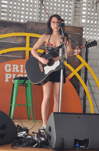 Things started earlier than on Friday, with the first acts going on at noon. While I’m not familiar with all of The Bombpops‘ catalog (love “Notre Dame” though), I liked enough of what I have heard to get myself to the Speakeasy stage early to check out the band’s lead singer Jen Pop do an acoustic set, focused on tracks from her new solo album East Side of Eden. Though she admitted to not being a morning person (or early afternoon in this case), Pop was still a delightful presence to begin the day with. Her vocals sweet with her lyrics salty, her songs had a musical innocence that disguised the bite in her lyrics. Calling out her Misfits influences and joking about Danzig‘s lack of belief in Covid, the sometimes tangential stories in between songs were part of the set’s charm.