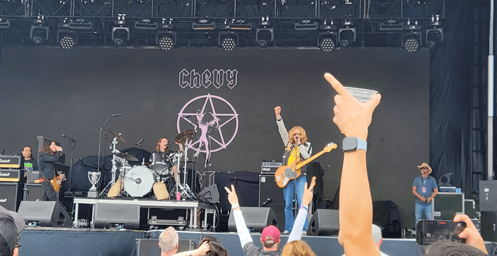 I had intended to next go see the solo set of Kevin Seconds back at Speakeasy, but my friend Michael Hixon from The Beach Reporter told me that the fest organizers had told him Chevy Metal were not to be missed. I was initially surprised the band was still touring since the passing of the great Taylor Hawkins, but with his son Shane now behind the kit, I figured it was worth dropping by the stage. I picked up a sushi burrito and went to see the beloved cover band. The group opened with a spirited “Next to You” (one of the songs Sting left off his set list the night before). The band kept up the hits of yesteryear from passed/not touring acts like Thin Lizzy (“Jailbreak”), The Kinks (“You Really Got Me”) and David Bowie (“Moonage Daydream”). The young Hawkins got to show-off his skills with Led Zeppelin‘s “Moby Dick” – his old man would be proud. As a surprise, the band brought out legendary punk rocker Lee Ving from Fear to join them on harmonica and vocals for their final songs, including a Van Halen cover.