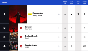 Europe has maintained a greater affinity for rock music than American the last two decades, being the place where Arctic Monkeys first broke (America wouldn’t get on the bandwagon until five albums in), and where Sam Fender has become a new millennium rock god (and for some reason still hasn’t really broken big here yet). But two other UK artists, Bring me the Horizon and Sleep Token, have both managed to take America by storm. The former has earned one gold album and three gold singles, while the latter’s last three singles have all debuted (and spent multiple weeks) on the Billboard 100, after their single “The Summoning” went gold last year. And even more impressive – their latest album Even in Arcadia debuted at #1 on the Billboard 200 with over 125k in sales (beating Ghost‘s album a couple weeks prior).