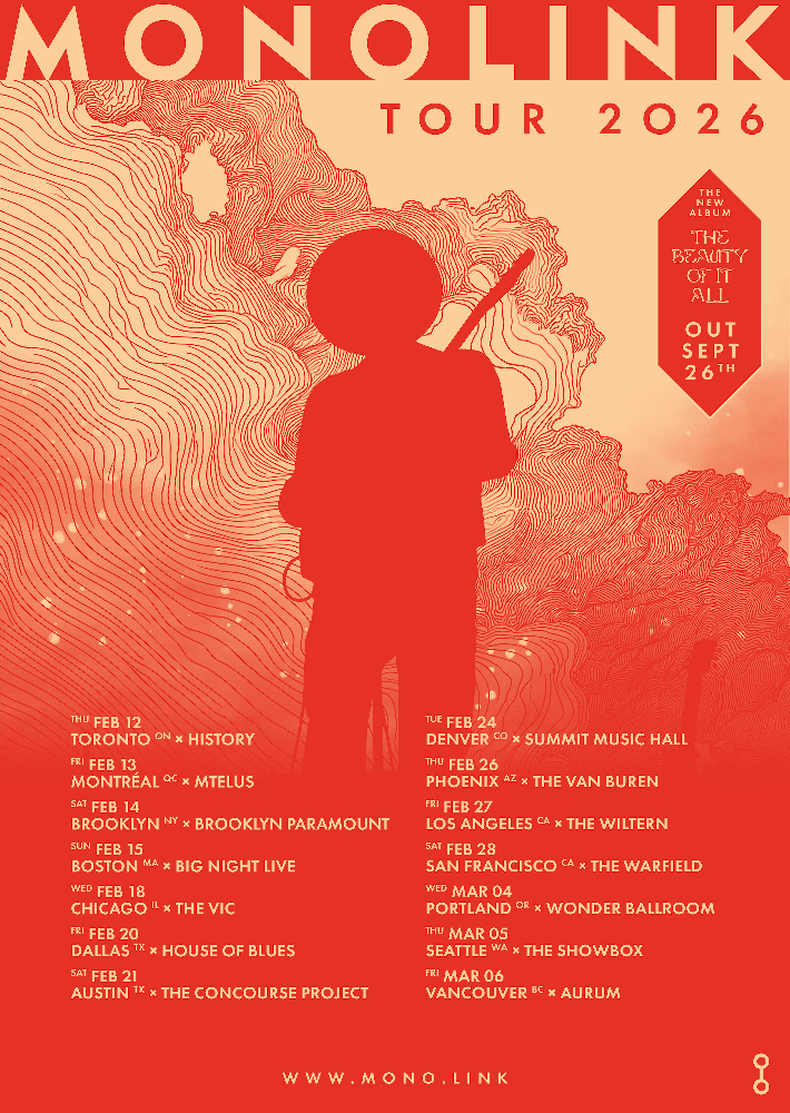 Monolink has a North American tour on the docket for early 2026, with stops in 14 cities to help get us through the harshest weeks of winter. Tickets are available here. The album, The Beauty of it All, is now available for streaming on Spotify and other platforms.