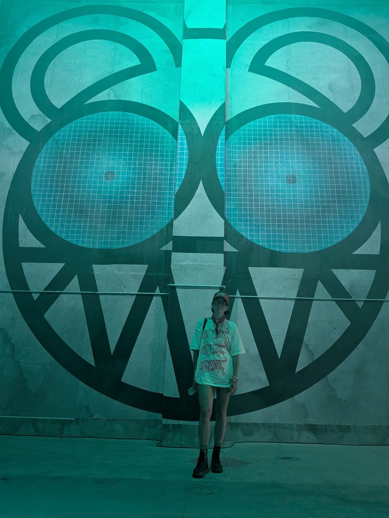 And let’s not forget the vocalist Giveon, who had a gorgeous moment during his song “Mia”, with a lithe ballerina dancing silhouetted around him. He wears black leather gloves and is dressed like James Bond. His voice is a bubble bath of masculinity, and when he takes off his suit coat, we all feel it. Labrinth, made famous for his featured tracks on Euphoria, brought in a level of production that might be my favorite moment of the festival—Him standing on a rising tower singing and riffing on the electric guitar. Fat Boy Slim, who has been around since American Pie, curated a playful and unrelentingly joyful set at the Quasar stage. And one of my personal faves for dancing in the dark, Adriatique.